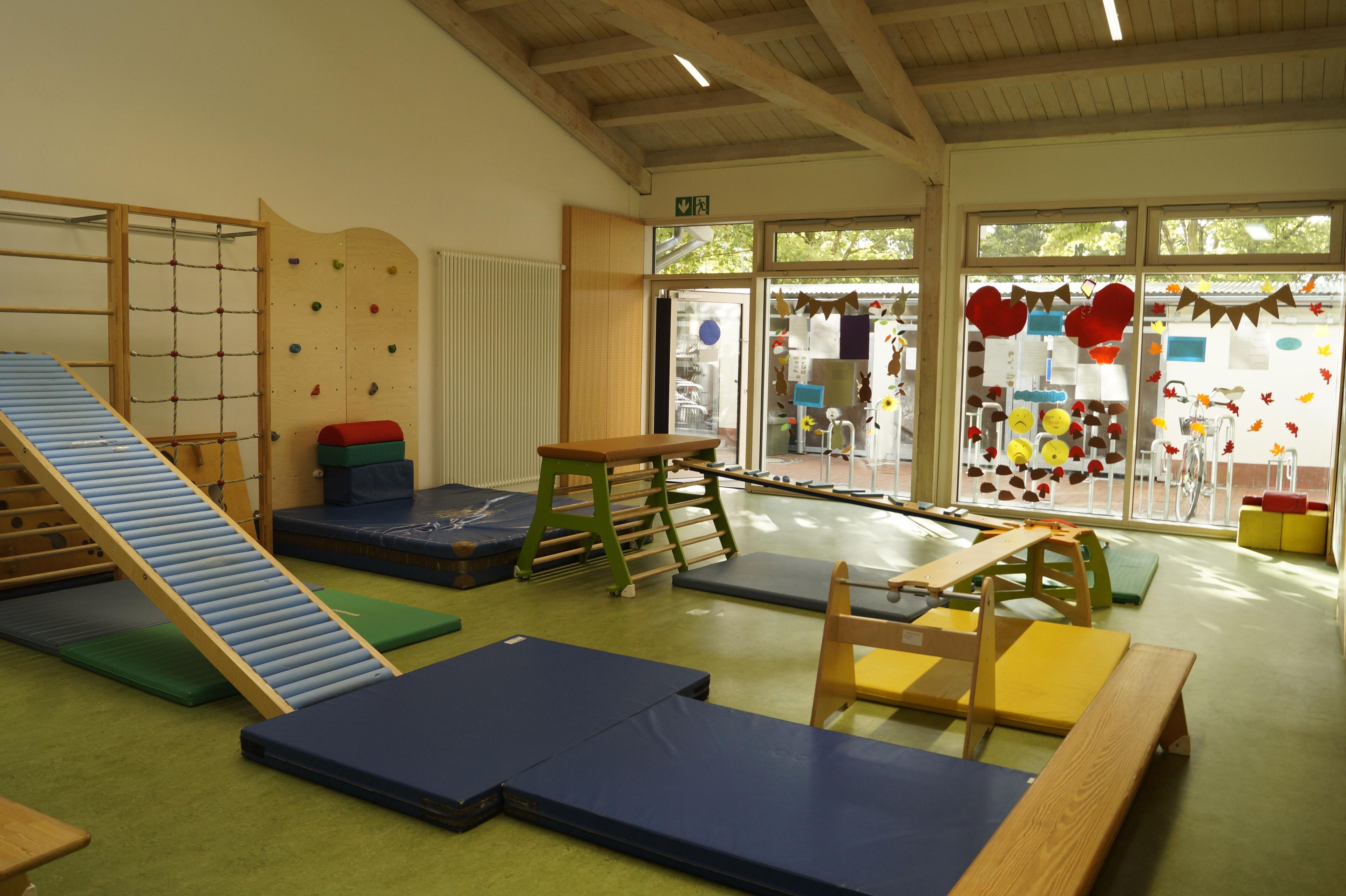 Für Sport, Spiel und Tanz stehen uns zwei Turnhallen mit verschiedenen Geräten und sinnesförderndem Material zur Verfügung.