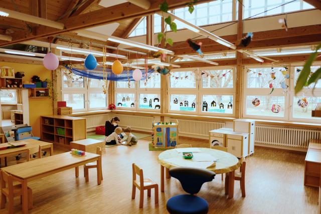 Die moderne, groß angelegte, kinderfreundliche Kindertagesstätte wurde 1990 zweigruppig eröffnet und erweiterte ihre Räumlichkeiten 1993 auf vier Gruppen.