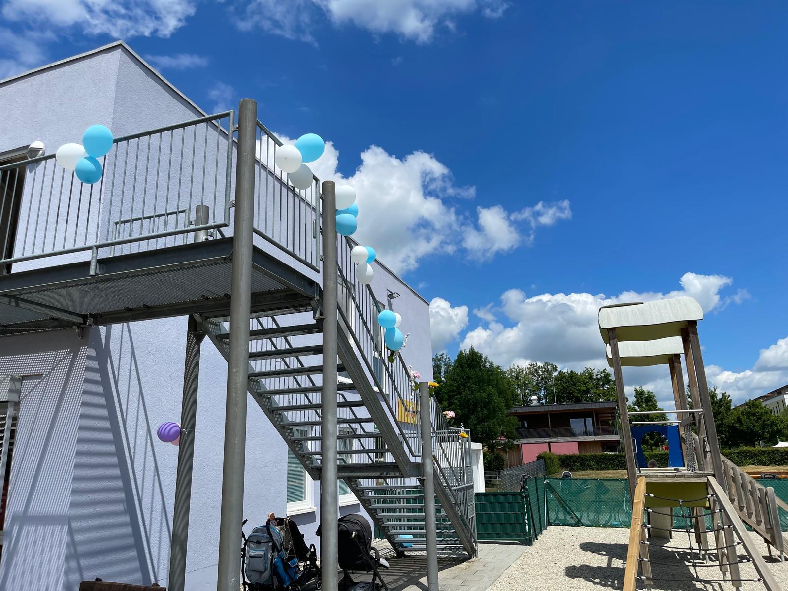 Unser Kinderhaus verfügt über ein großzügiges Außengelände mit Sandkasten, Schaukel, Klettermöglichkeiten, Weidentunnel, Rutsche und viel Raum zur Bewegung. Des Weiteren kann die Terrasse zum Bobbycar-, Dreirad- oder Rollerfahren genutzt werden.
