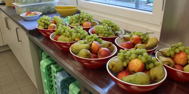 Abgestimmt zum Mittagessen, wird eine Nachmittagsbrotzeit zubereitet, die in den Gruppen gleitend gegessen werden kann. Über den gesamten Tag steht den Kindern eine Auswahl an Obst zum snacken zur Verfügung.