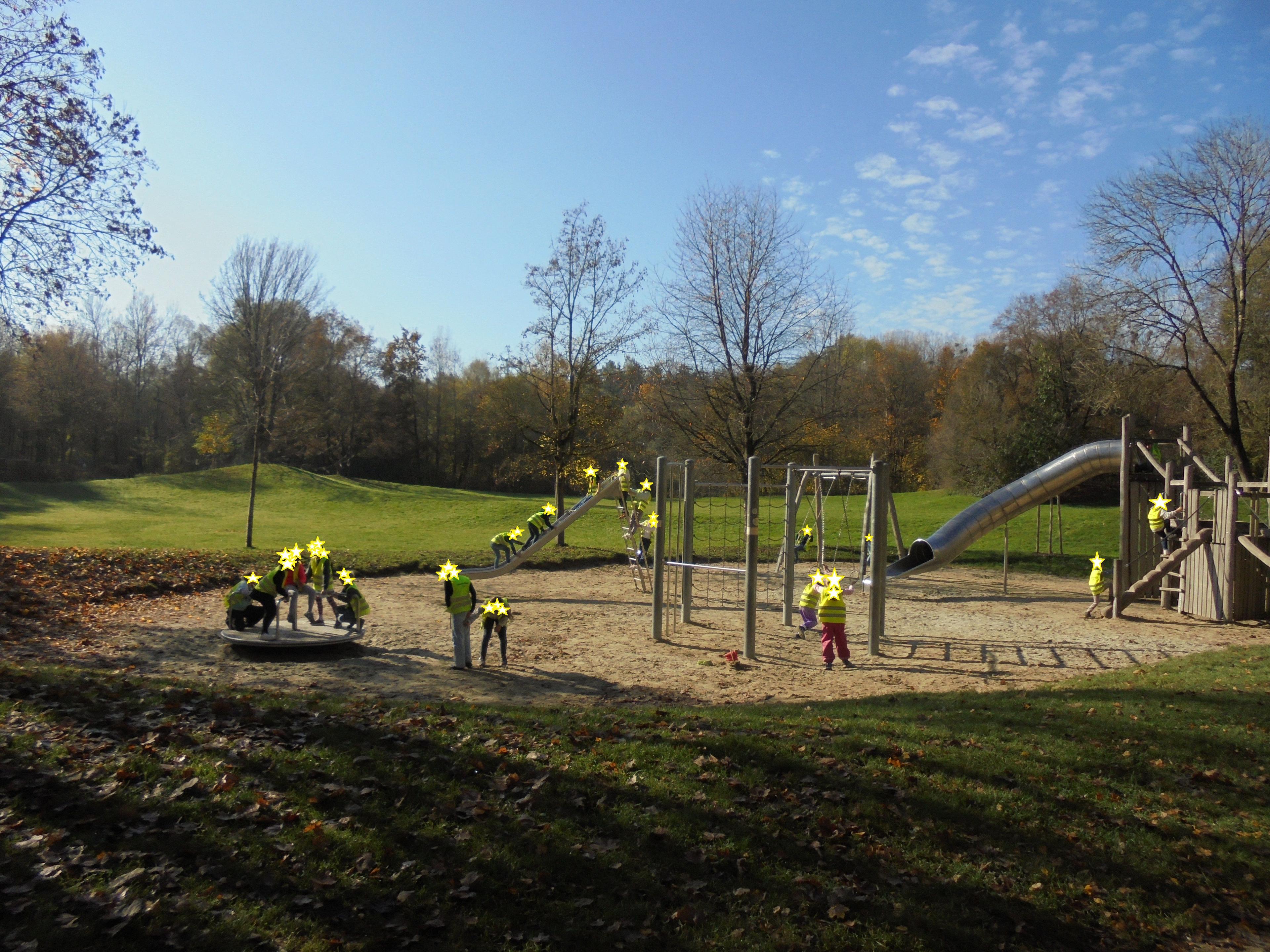 Wir nutzen auch die in der Umgebung befindlichen Möglichkeiten: Spiel- und Bolzplatz, Schulhof, Kino, Bücherei und sonstige Angebote der Gemeinde.