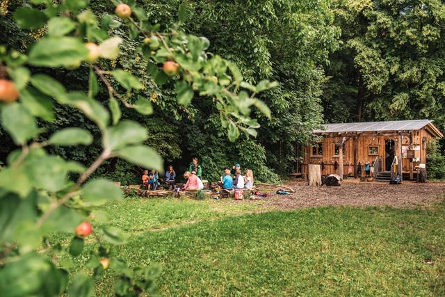 Unser Stützpunkt ist eine schöne, gemütliche Hütte am Waldrand der Hugo Ermer-Siedlung.