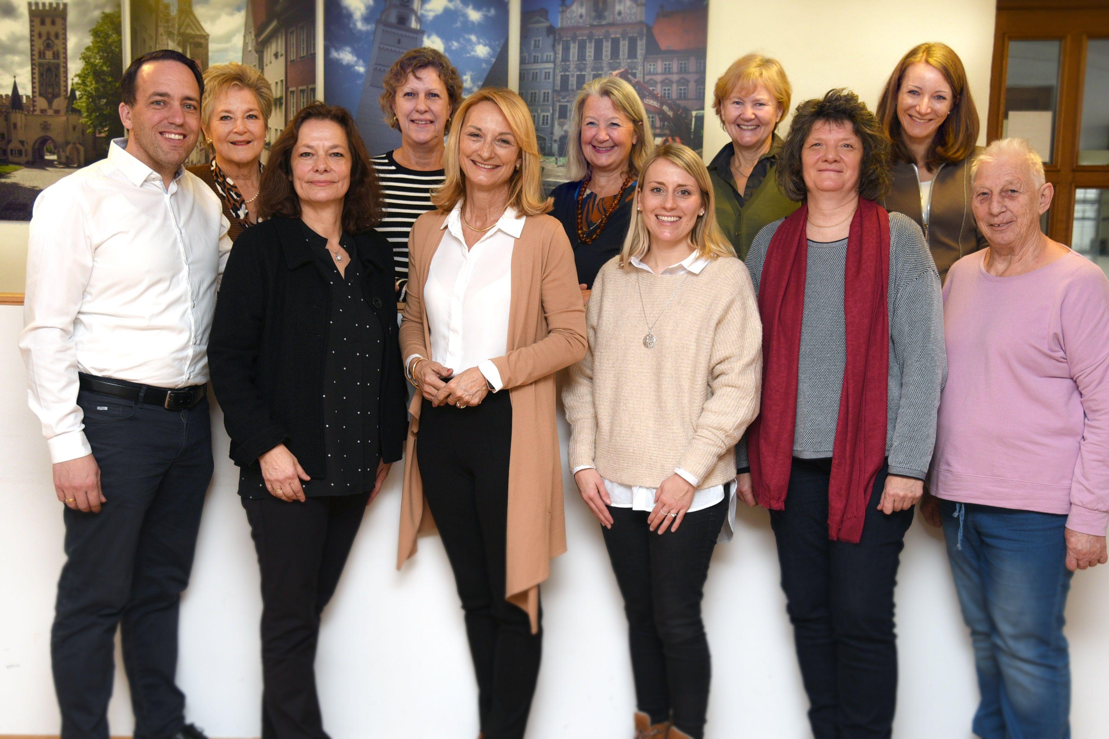 Foto von Conny Kurz zeigt (von links): Kreishandwerksmeister Markus Wasserle, AWO-Kreisvorsitzende Margit Däubler, MGH-Leiterin Betina Ahmadyar, Integrationsbeauftragte für den Landkreis Susanne Taryne, Oberbürgermeisterin Doris Baumgartl, Fachbereichsleiterin Herzog-Sägmühle Claudia Dohmke-Becker, Fachaufsicht der Kinder Tagespflege Lydia Böck, die zuständige Beauftragte für Chancengleichheit am Arbeitsmarkt Maria Vogl, AWO-Mitarbeiterin Petra Dürbeck sowie Susanne Gamperl, Beauftragte für Chancengleichheit am Arbeitsmarkt Weilheim, und Ehrenamtliche Traudl Manka .