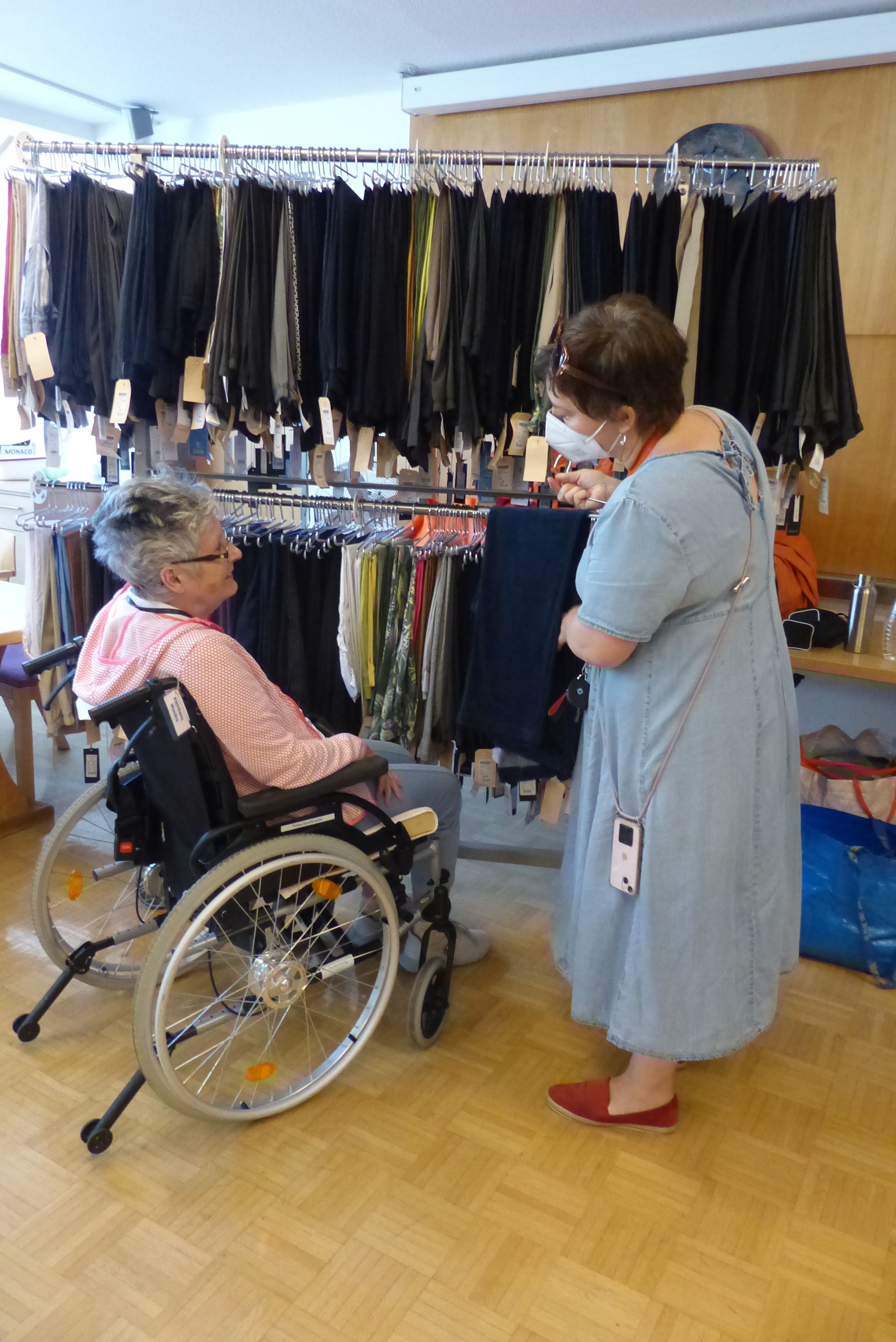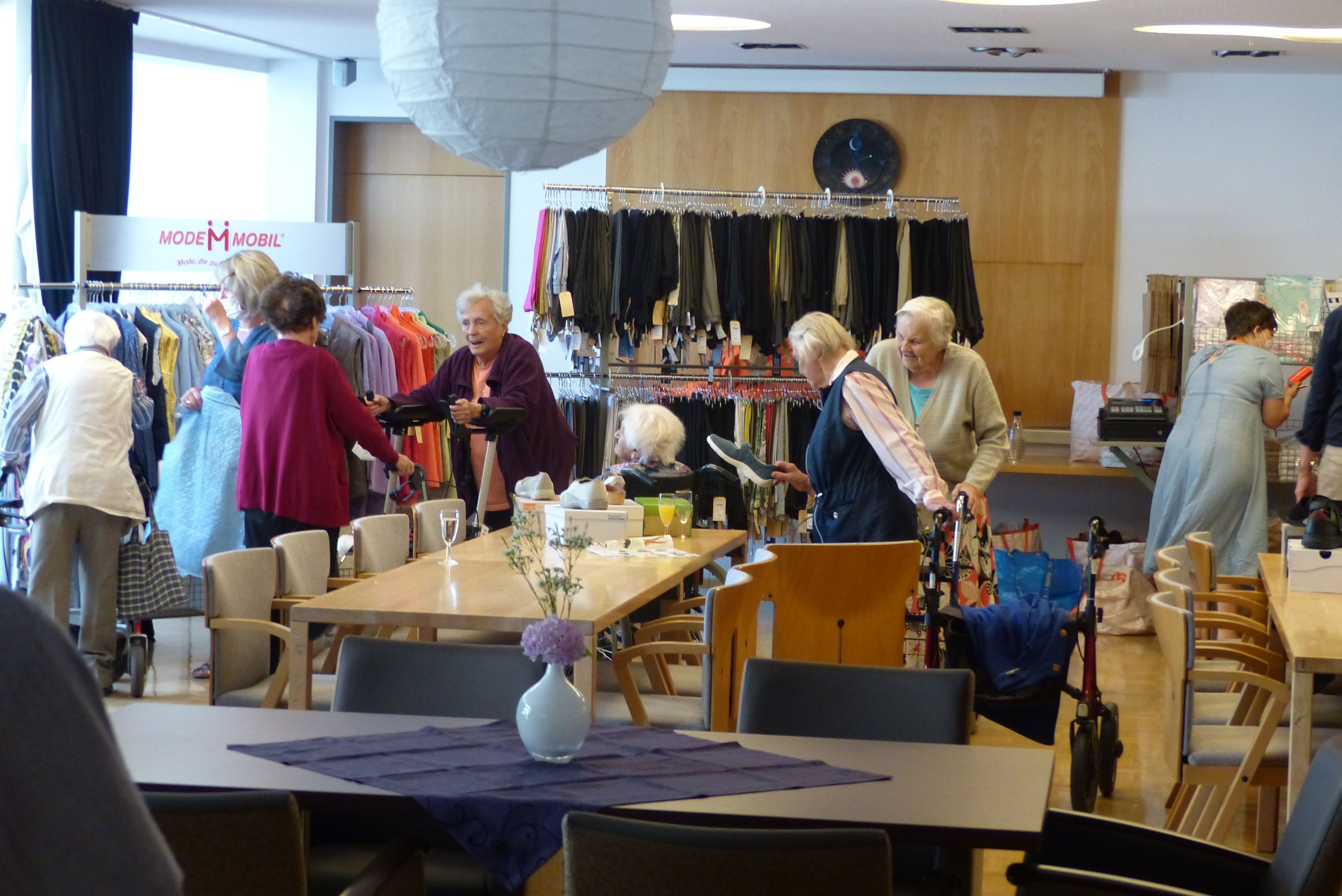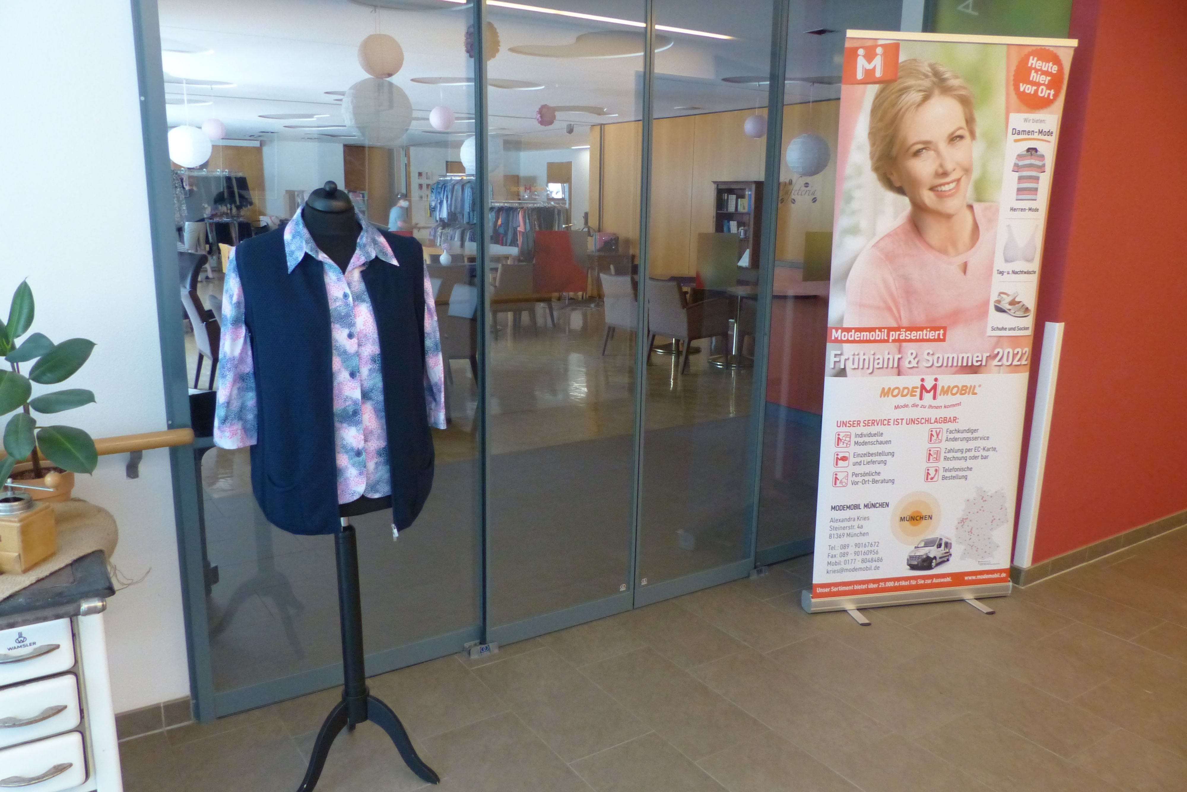 Mit Beginn der Coronapandemie 2020 beendete Witt-Weiden sein Engagement in den Senioreneinrichtungen und löste seine mobile Abteilung, die die Pflegeheime besuchte auf. Aber wenn eine Tür sich schließt geht in der Regel eine andere Tür auf. So auch in diesem Fall. Im Mai dieses Jahres konnten wir mit einer neuen Modefirma einen Verkaufstermin vereinbaren. Mit ihrem vollgepackten Transporter fuhr am Dienstag, den 9. August Frau Kries von der Firma ModeMobil auf unseren Hof. Gemeinsam mit ihrem Mitarbeiter brachte sie die vielen Kleiderständer mit der Sommerkollektion in den Terofalsaal. Blusen, Jacken und Hosen für die Damen. Hemden, Pullover und Hosen für die Männer. Wäsche, Socken, Schals und Schuhe, für jeden Besucher war etwas dabei. So nutzten auch viele Seniorinnen und Senioren den Verkaufsnachmittag. Auch einige Angehörigen schauten vorbei und gingen mit ihren Senior*innen im Terofalsaal bummeln.