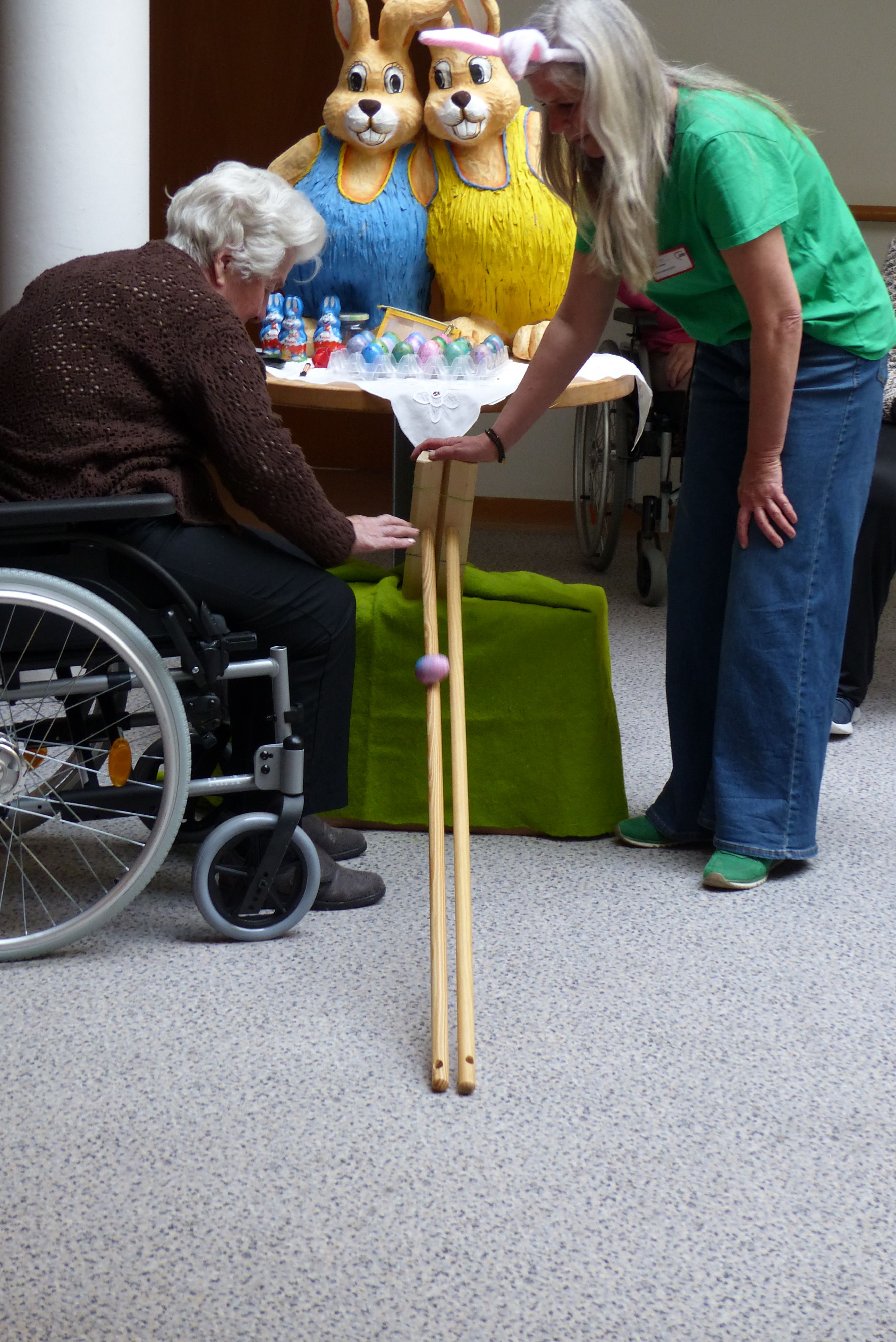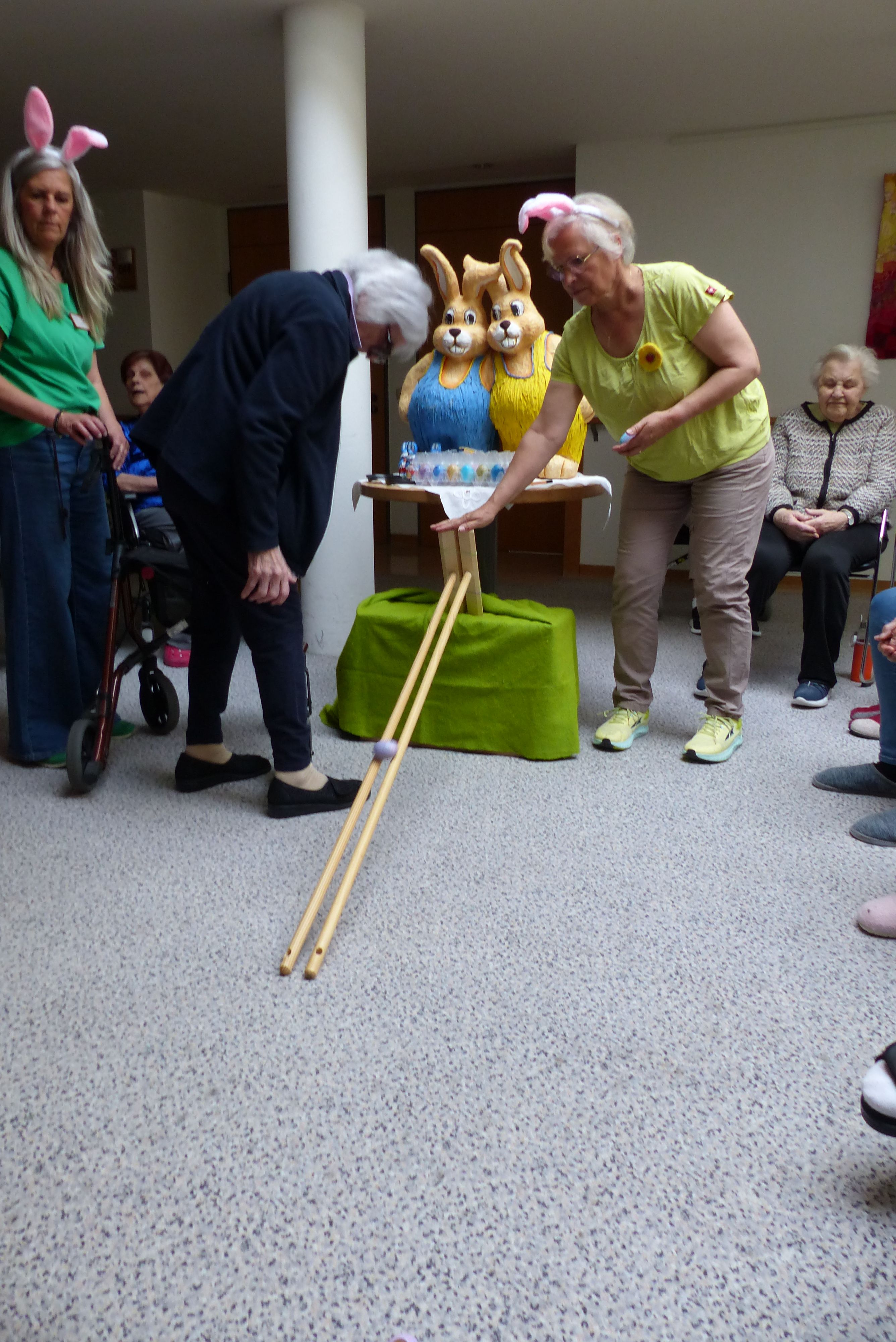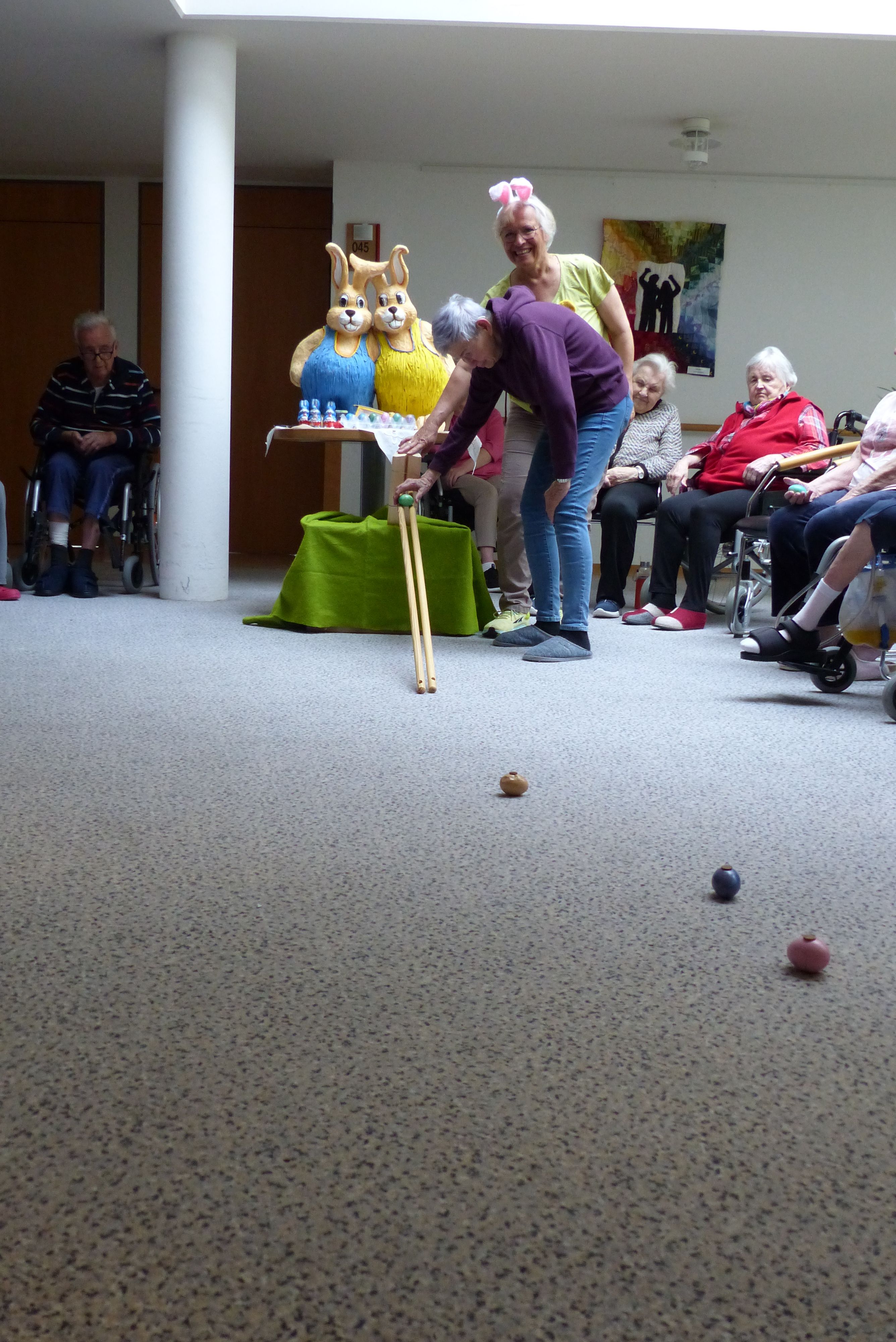 Die meisten Teilnehmerinnen und Teilnehmer haben es schon in ihrer Kindheit an Ostern gespielt und jetzt wieder im hohen Alter im Seniorenzentrum. „Oar scheibn“ war nicht nur eine riesen Gaudi in der Karwoche, sondern weckte bei vielen auch wunderschöne Kindheitserinnerungen. Im Gegensatz zu früher brachte zwar niemand mehr die Pfennige sprich Centstücke selber mit zum Spiel, aber das hartgekochte Ei durfte anschließend von allen mit nach Hause genommen werden.