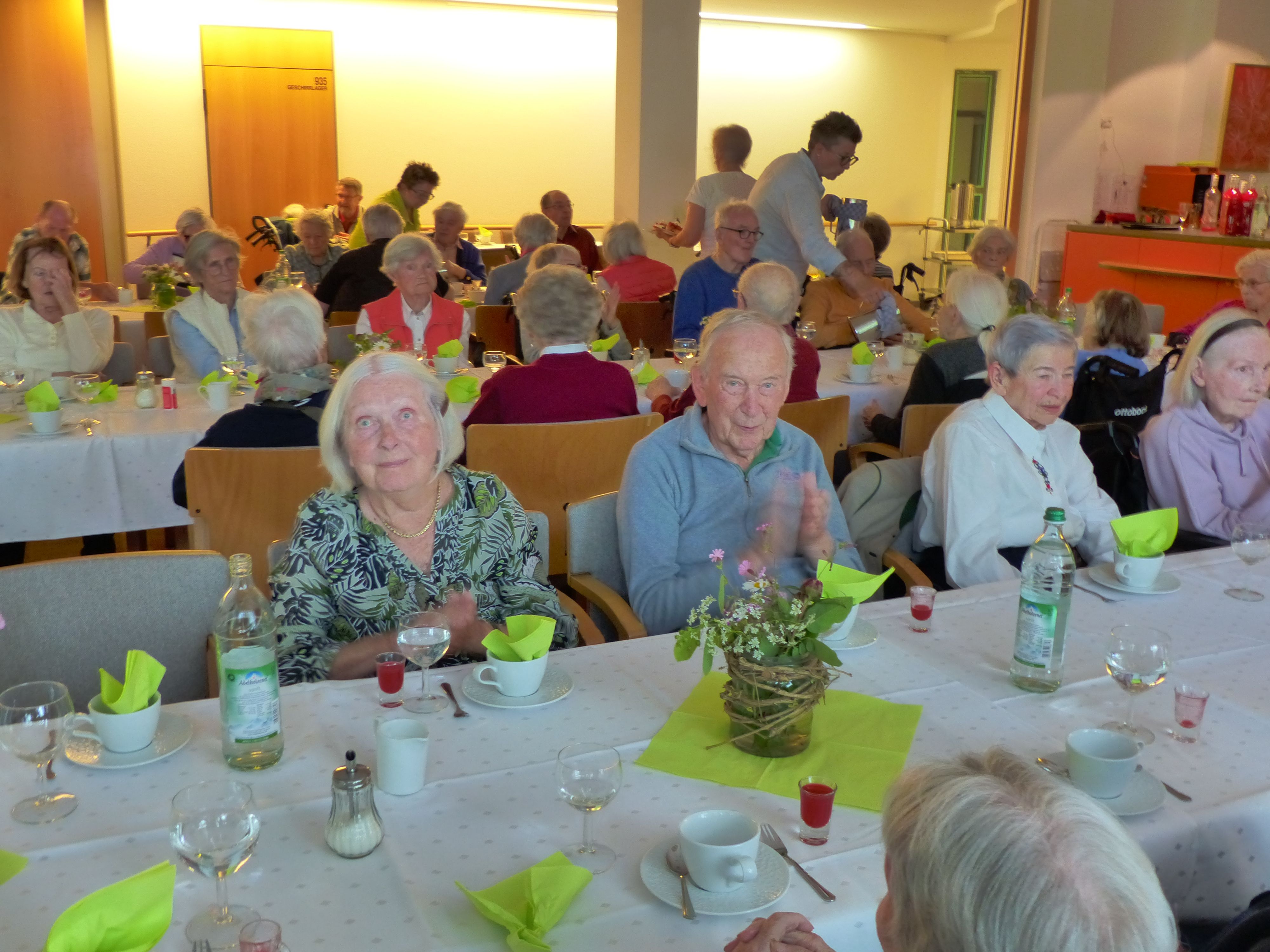 Wieder einmal feierten wir ein fröhliches Fest bei Kaffee und Kuchen und passend zur Jahreszeit servierte die hauseigene Bäckerei den Seniorinnen, Senioren und allen Mitarbeitenden leckerschmeckende Erdbeerkuchen mit frischer Sahne.