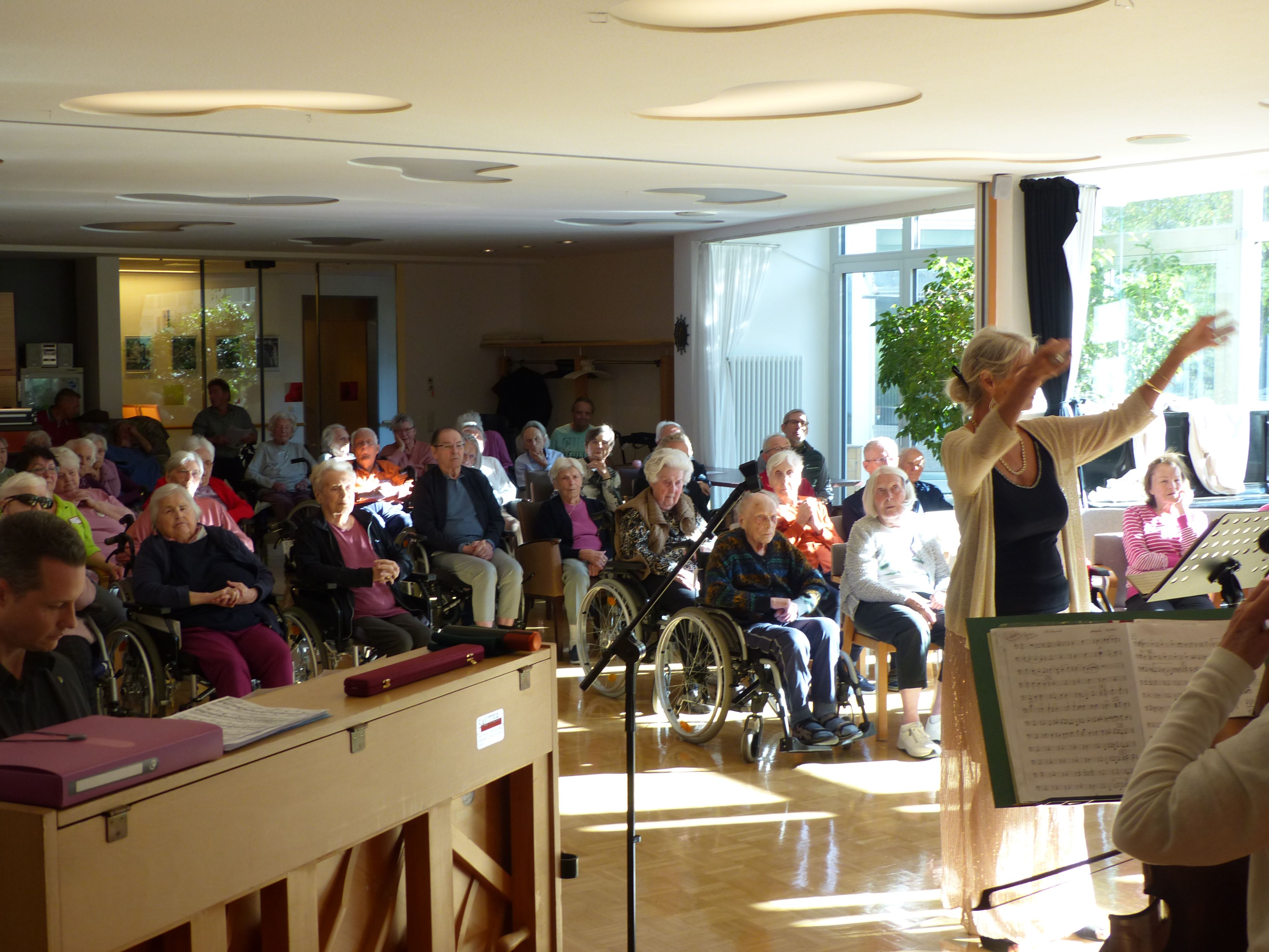 Zum zweiten Mal in diesem Jahr gab uns das Orchester vom Miesbacher Chor- und Orchesterverein unter der Leitung von Sventha Danneberg ein Konzert im Inge-Gabert-Haus. Mit einer Mischung aus Klassik und Pop verwandelte das Orchester unseren Terofalsaal in einen großen Konzertsaal. Von Jaques Offenbachs „Barcarole“ über Bert Kämpferts „Spanish Eyes“ bis Leonard Cohens „Hallelujah“ war für alle Seniorinnen und Senioren eine Musikrichtung mit dabei.