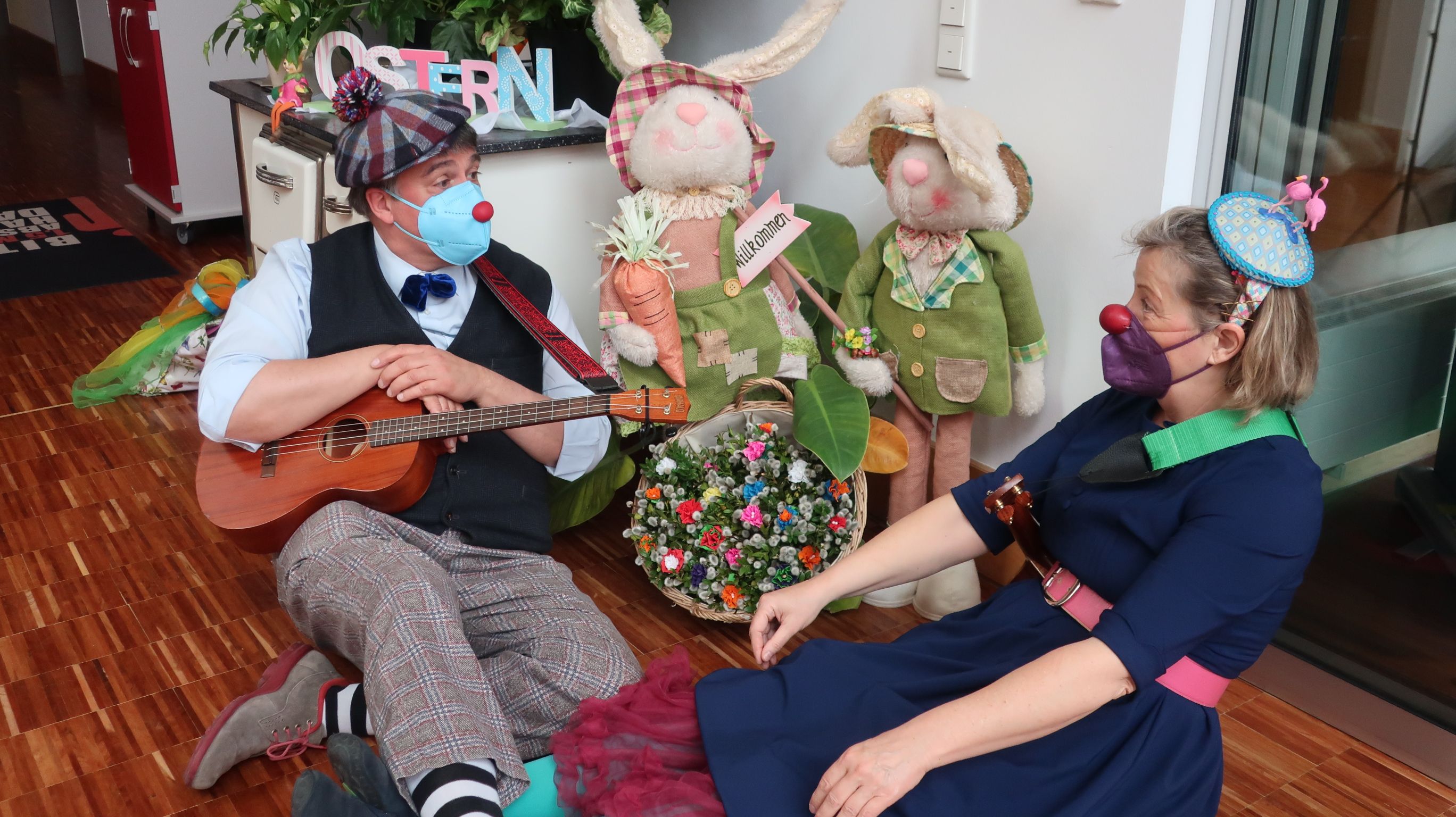 Auch unsere Klinikclowns waren begeistert von den bunten Palmbuschen.