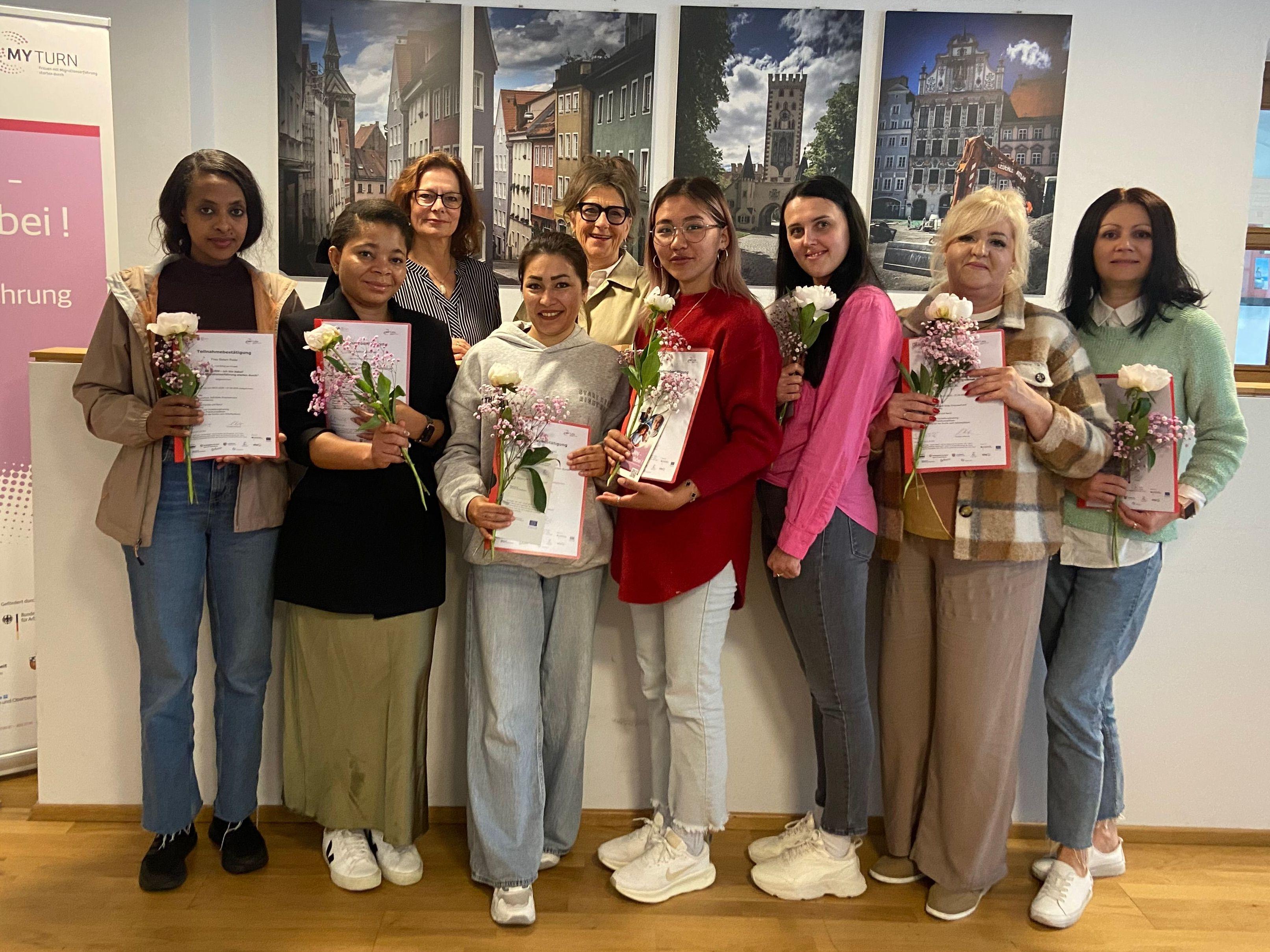 Das Projekt „MY TURN – Ich bin dabei! “ in Landsberg wird im Rahmen des Programmes „MY TURN-Frauen mit Migrationserfahrung starten durch" durch das Bundesministerium für Arbeit und Soziales und die Europäische Union über den europäischen Sozialfonds Plus (ESF Plus) gefördert.